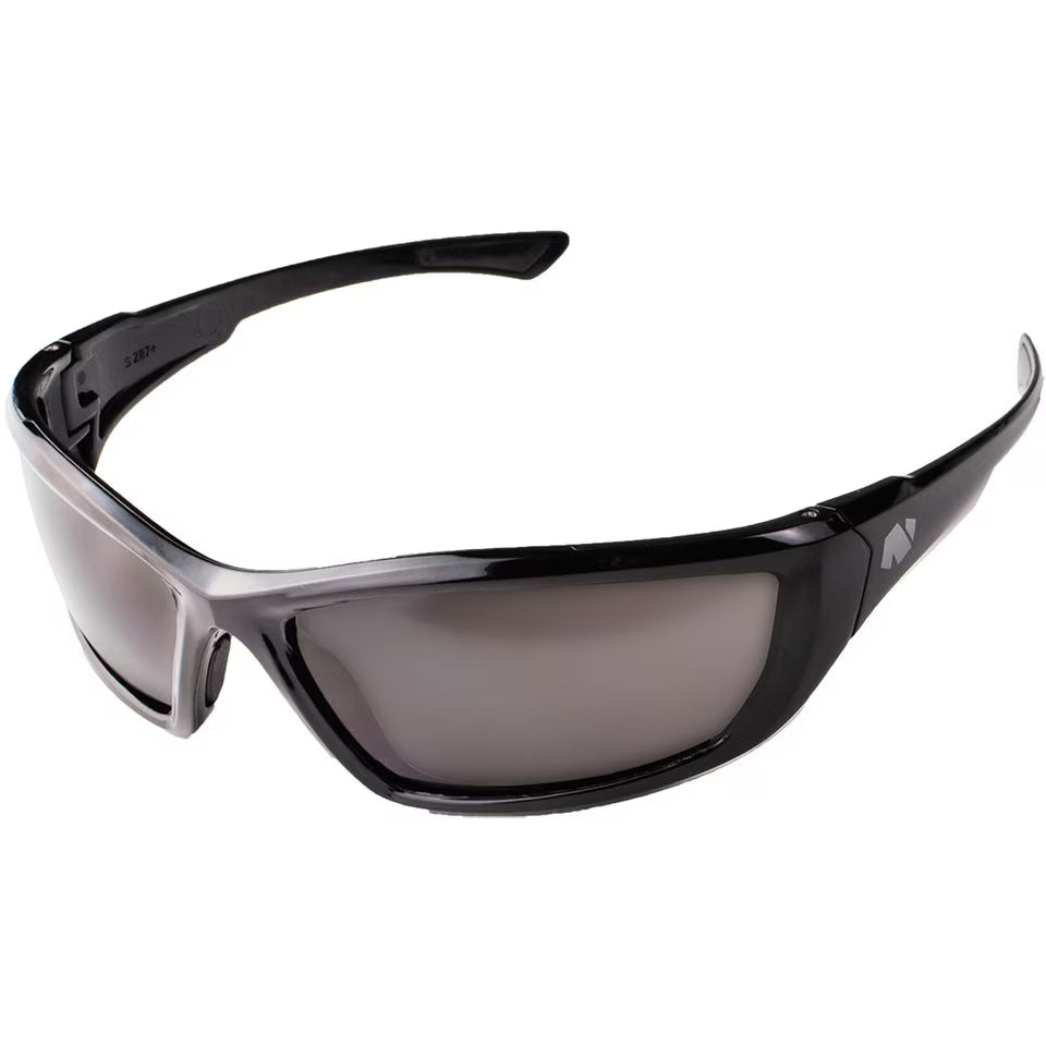 The durable Kerf Safety Glasses feature black frames and anti-fog smoke-colored lenses, complemented by soft foam padding for a comfortable fit that works well with most helmets.