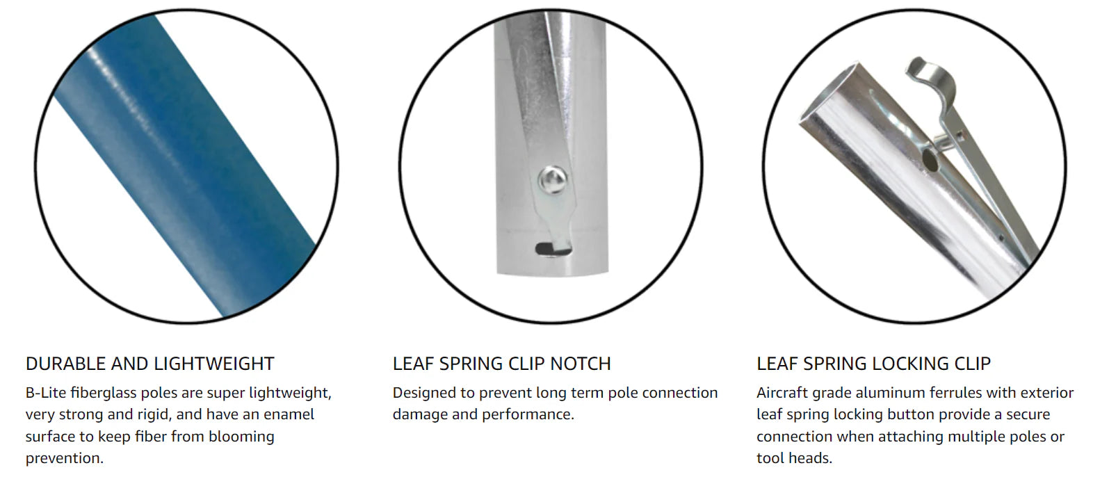 Jameson Universal aluminum pruner pole ferrules for ultimate versatility. Aircraft grade aluminum ferrules with exterior leaf spring locking button provide a secure connection when attaching multiple poles or tool heads.