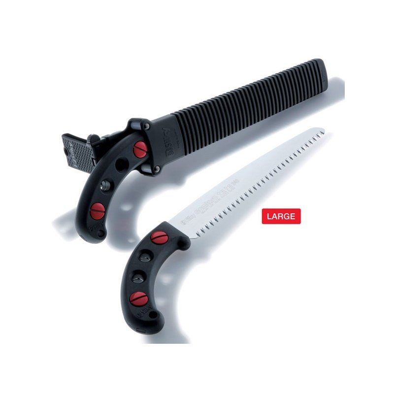 Specifications: Blade length: 9-1/2-inch (240 mm) Teeth per inch: 7 Teeth configuration: (8 teeth per 30 mm) Operating weight: 0.3 pounds (140 grams) Weight with sheath: 0.6 pounds (260 grams) Durable red polypropylene sheath with belt clip is included