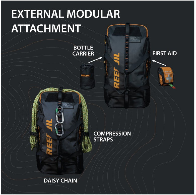 EXTERNAL ORGANISATION: Organise the outside of the pack by easily adding first aid kits, water bottle storage, or additional pouches, using the MOLLE attachment system. Plus daisy chain loops and compression strap attachment for even more external carry options.