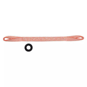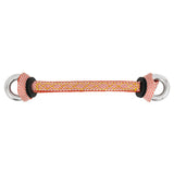 Suspension bridge has a striped white and dark orange Spectra fiber overlay for strength and abrasion resistance that surrounds a black nylon tubular webbing core to provide for additional wear inspection. Aluminum "O" rings not included.